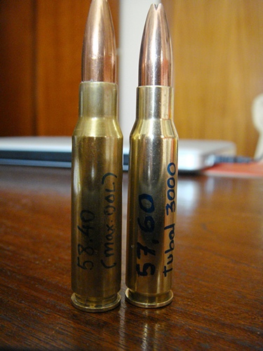 2) El Derecho es mi carga desarrollada con esa punta y Tubal 3000. Como veis en la foto, en la vaina anoto el OAL, propelente y carga.