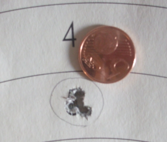 Por ahora estoy pendiente que me llegue una balanza y una galga, para clasificar la munición y tirar grupos de 5 muy semejantes. Porque tirando la munición tal y como viene (a no ser que se compre gama alta), muy pocas veces sale una agrupación de 9mm (ya buscaremos cerrarla más) con los 5 impactos, casi siempre hay 1 ó 2 impactos que se desvian unos mm de la agrupación.