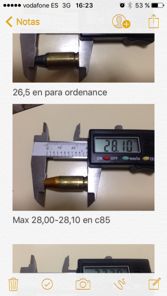 Léete en este hilo de la página 15 a la 20 tengo colgadas pruebas con cn 85 combat k es igual k la tuya al fin y al cabo. Resumiendo en mi arma y mi cañón con 3,8-3,9 grains da factor. Es más suave k la comercial y agrupa perfectamente. A la noche te cuento más. Eso sí el ltc cn hn troncoconica un poco más corto. A la noche te lo miro
