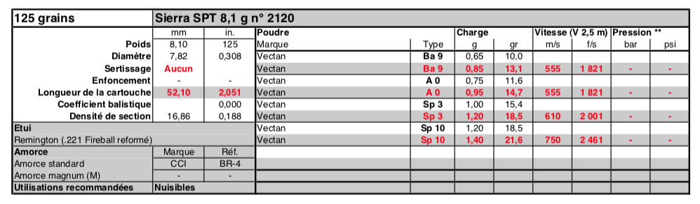 Te adjunto unas tablas de Vihtavuori, que aunque no aparezca la receta que tu necesitas, puedes tener una referencia.