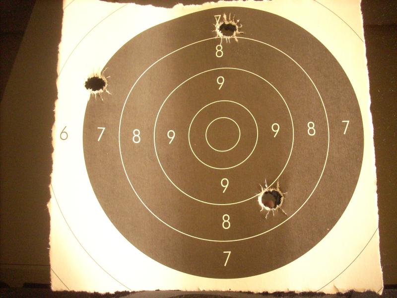 Despues de muchas pruebas, con las tres ultimas balas de hoy, a 50m y con un blanco nuevo aqui estan los resultados.