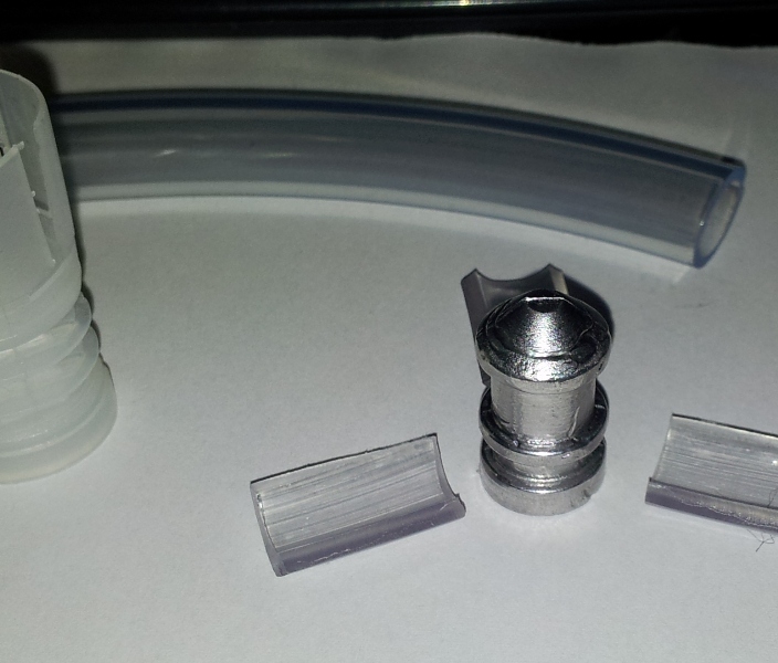 Y esta bala que tu haces, la estoy trabajando por simple curiosidad :lol: , ya que no le voy a dar uso, pero creo que puedo usar perfectamente este proyectil del .50 con la goma que le pongo, y que no ha de quedar la manguera totalmente cerrada en los cortes para que se centre la bala. Con 3 trozos y habiendo 1mm de separación entre ellos la bala seguirá centrada, y como es un tipo de plastico flexible debería quedar justito para que no se mueva dentro del taco.