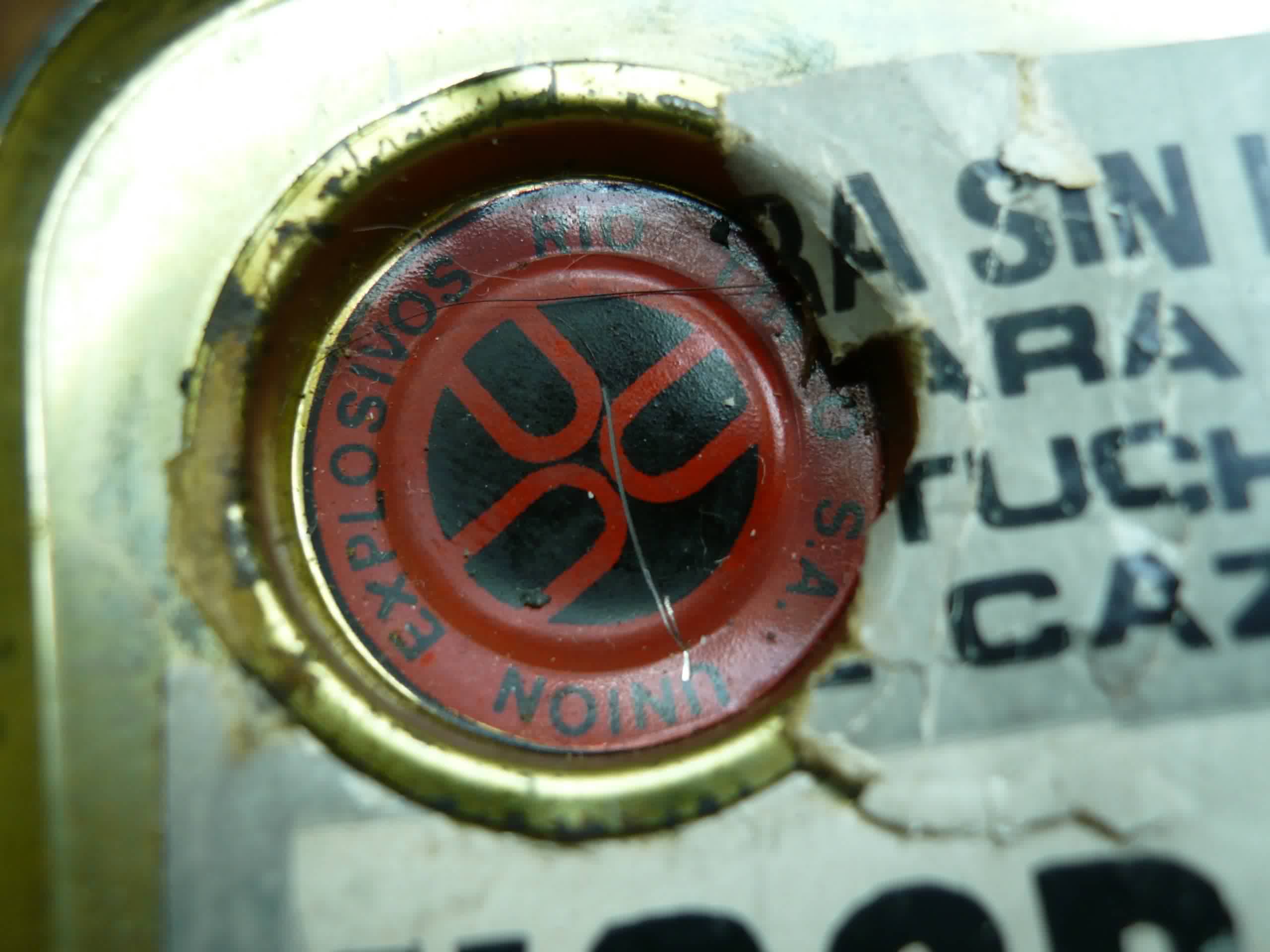Parece ser, por el sello del tapón, que la comercializaba la Unión Explosivos Rio Tinto (ERT S.A.) y en uno de sus lados viene una nota con diferentes cargas para distintos tipos de pólvora.