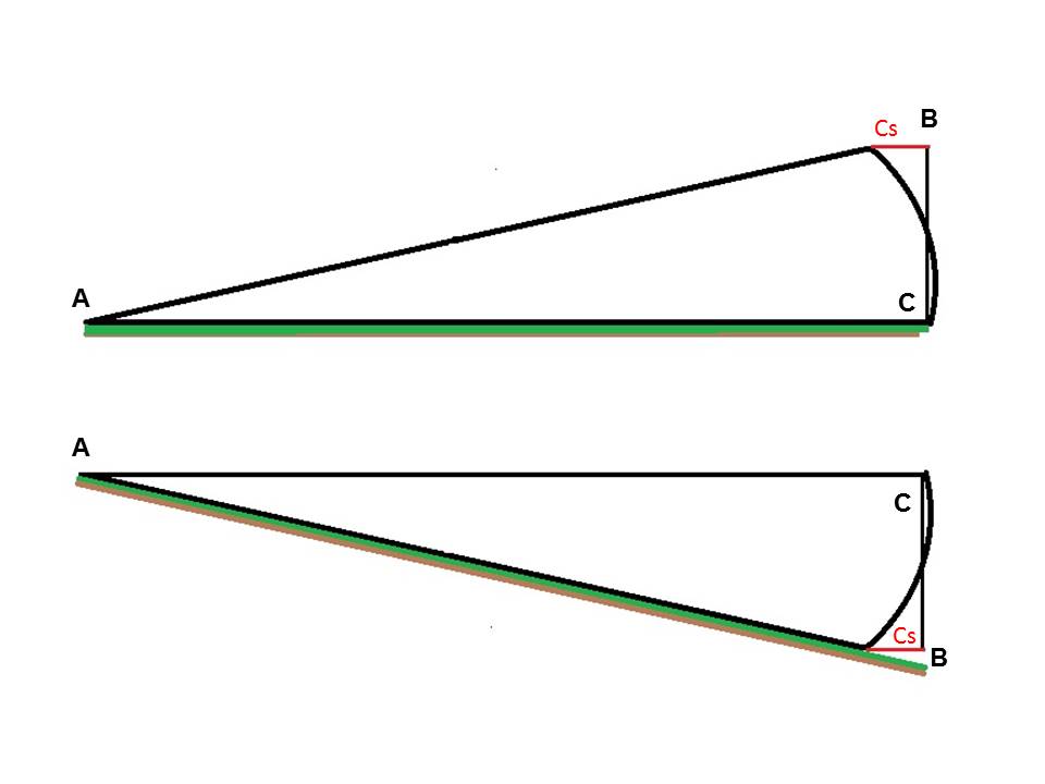 Se puede observar que el valor Cs representa la distancia sobre el eje X a la que nos alejamos del punto B. Siendo la distancia que debemos restar al triangulo formado para obtener distancia de proyección del inicio de la linea roja sobre la diagonal.
