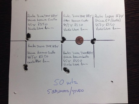 Cuatro de los cinco grupos son con puntas Sierra TMK 168 gr excepto el superior dcha. que es con Lapua Scenar 167 gr