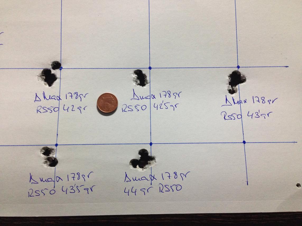 Este finde he seguido haciendo pruebas con la a Max 178 gr. No se si es que no le gustan al Tikka, si el peso no es adecuado al paso de estría o si estoy haciendo algo mal, pero no me gustan los resultados obtenidos.