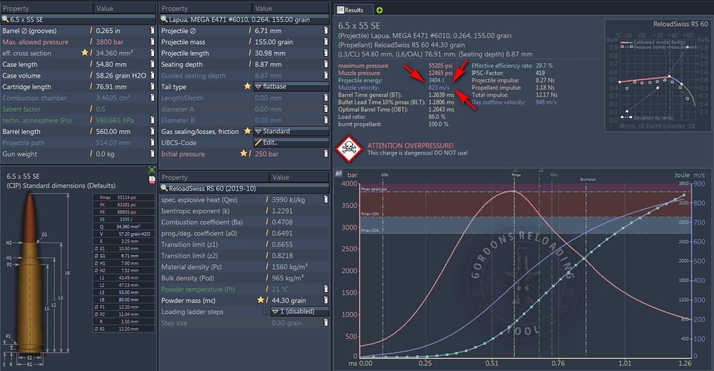 Me he instalado el GRT para mis recargas de 45 colt. Hay algo que no hago bien porque cuando le meo los datos de recarga con puntas Hornady XTP de 250gn con polvora Vectan BA9, siempre me sale alerta de sobrepresion. En las tablas de vectan los valores de carga estan entre 7.9 y 9.8gn, y en el programa ya con 6.5gn ya me salen las alertas. La presion se dispara a mas de 98.000psi.