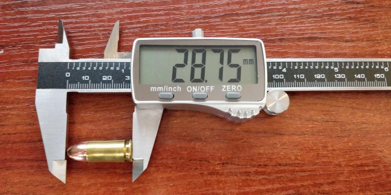 Ah! La especificación de 9mm Pb dice que la LTC máxima no puede superar los 29,7mm. La munición comercial, al menos la Magtech y la Sellier & Bellot que yo he usado suelen venir a una medida de 29,3mm de LTC de media, pero ya te digo, yo he probado desde 28mm, a los 29,3mm, de hecho empecé ahí, pero luego fui bajando y me he quedado en los 28,75