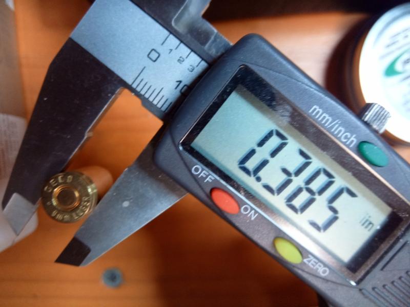 Aquí pongo dos más; la que ofrece la medida 0.385" es original sin disparar, la que indica 0.3895" es una recalibrada pasada por el primer Die. Ambas de la misma marca y tomada la medida en la misma zona. Todas la vainas usadas dan la misma medida y eso es lo que quiero solucionar. Es 0,127mm de diferencia, inapreciable, pero seguro que se puede y hay alguno que lo hace, al menos en foros americanos...el cómo, ése el el tema.