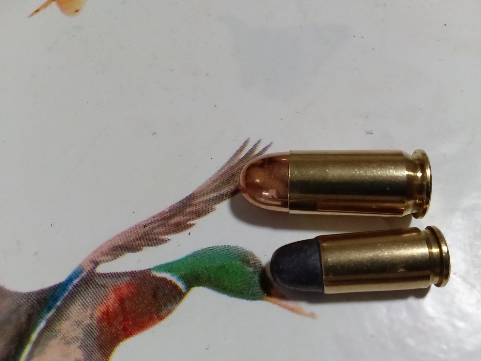 En foto, 9 mm p y 45 acp, factory, de PRVI...observese cero crimp en 45...y muy ligero en plomo 9mm..ligerito ligerito...