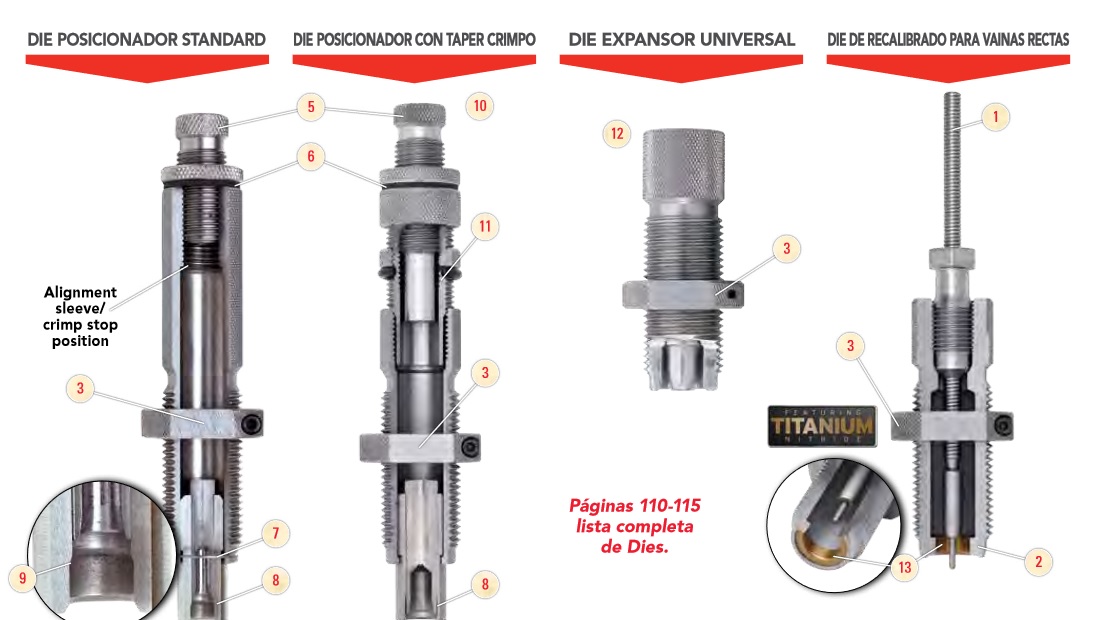 Según la web de Hornady, el set del 44-40 lleva el die recalibrador estándar, el "Hornady Cowboy Full Length Sizer Die 44-40 WCF", el cual no tiene anillo de nitrito de titanio.