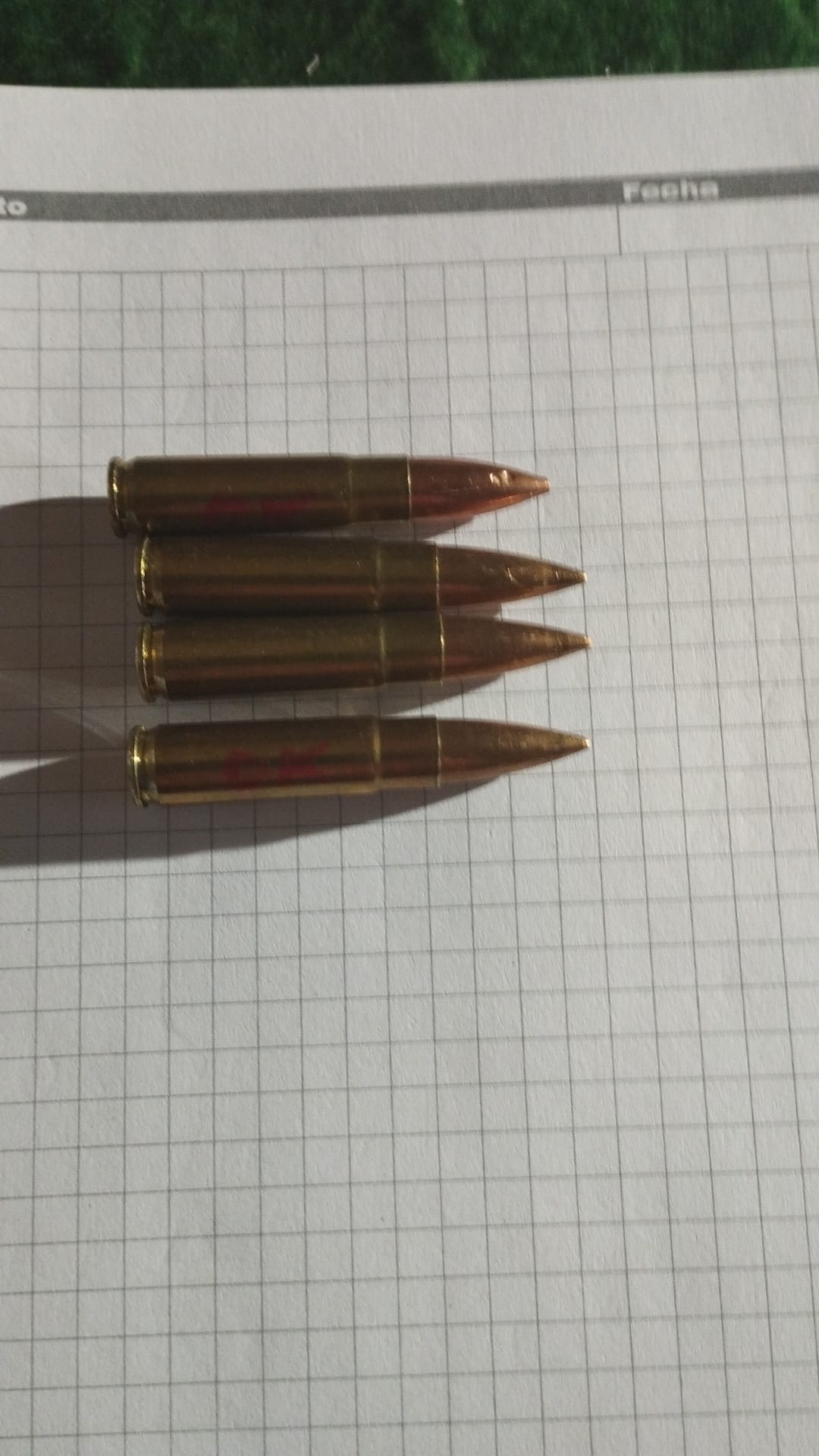 Hoy he desmontado todos los cartuchos que no se dispararon ,.he quitado los.pistones , los he pasado por todos los dies , les he puesto puntas y probado a ver.si se alimentan bien y se extraen pero sigo con el mismo problema.