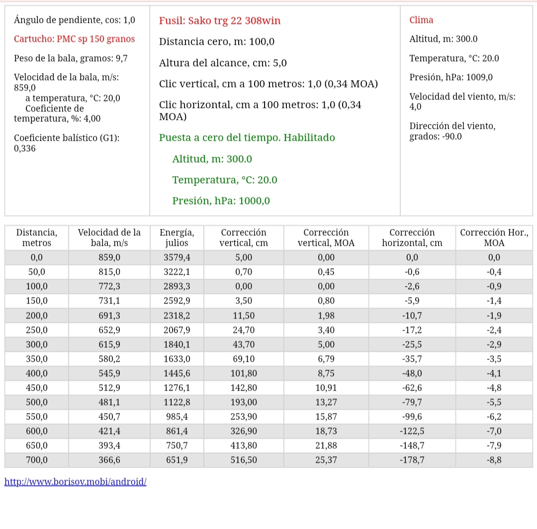 Te he hecho las dos. Te he puesto una altura media de 300 mts y una temperatura de 20°, ten en cuenta que la temperatura le afecta mucho al tiro, ¿ Cuánto? Eso es lo que tienes que comprobar.