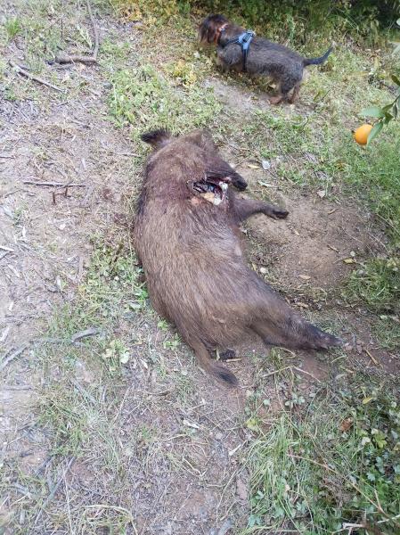 En uno de los cerdos podemos ver el orificio de entrada, el de salida era algo mas grande, la distancia no era mas de 25metros.