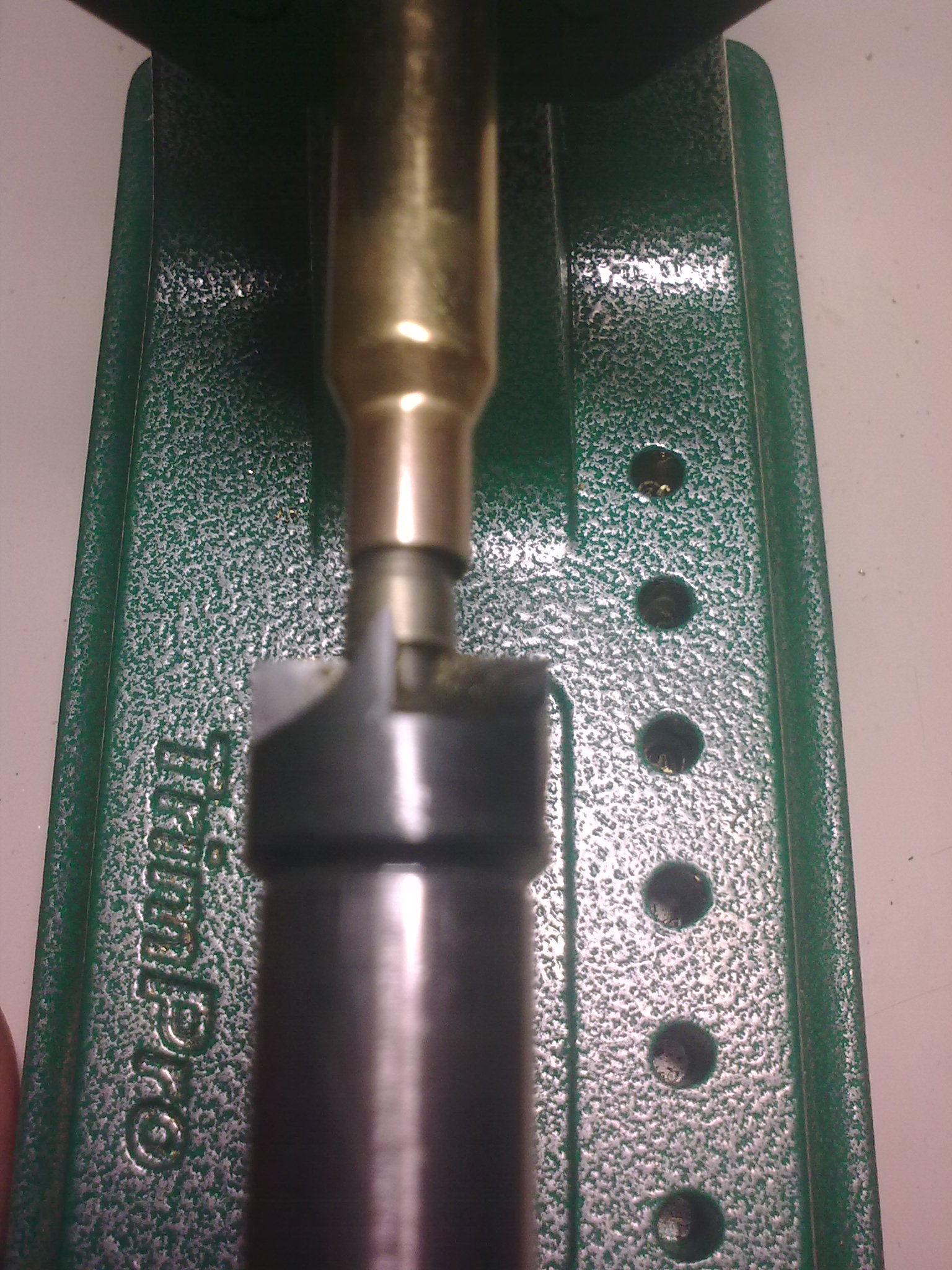 El fallo a mi modo de ver es que tanto el sistema de sujeción de la vaina como de la cuchilla estan sujetos al armazón con un tornillo, en el rcbs estoy hablando y tendrían que tener unos asientos muy buenos para que quedara la cocentricidad a 0.