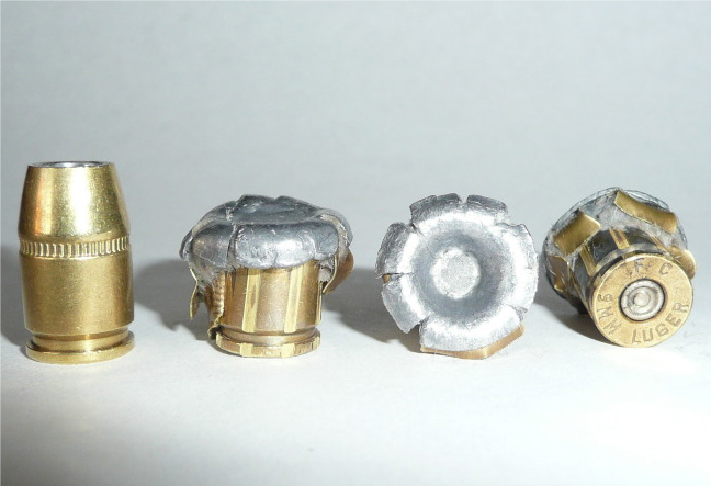 Correcto, así lo veo yo también, es mas, después de estar midiendo y estudiando el tema, hasta en 4 pasos, pues usan la vaina del 9mm para hacer el proyectil del .40S&W, y para el 9mm una del .223, pero esta hay que recortarla y además difícil de conseguir en cantidades por aquí, sin embargo la del 9mm se podría pasar por un primer díe que te redujera el diámetro en 0.60mm aproximadamente dejándola para su ultimo ajuste con el ultimo die de recalibrar, también el sobrante de vaina podría plegarse hacia dentro del hollow-point con el cierre en estrella.