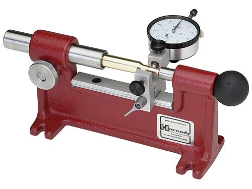 En cualquier manual de recarga encontraras esa informacion que buscas, básicamente es un torno para voltear los cartuchos montados y un comparador.