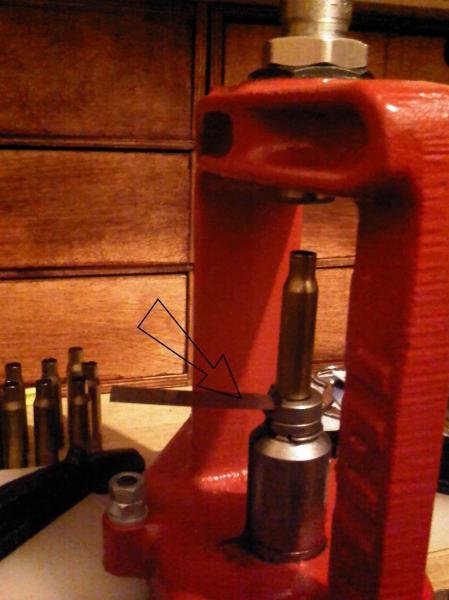 - Suplementa "lo necesrio" el Shellholder para que el cuello de la vaina quede "pelin" mas abajo, debes utilizar galgas calibradas, en mi caso, con una de 0,1 mm es sufciente, solo se lo hago una vez, luego, cuando disparo la vaina ya se "hace" a la recamara de mi rifle y solo recalibro cuello.