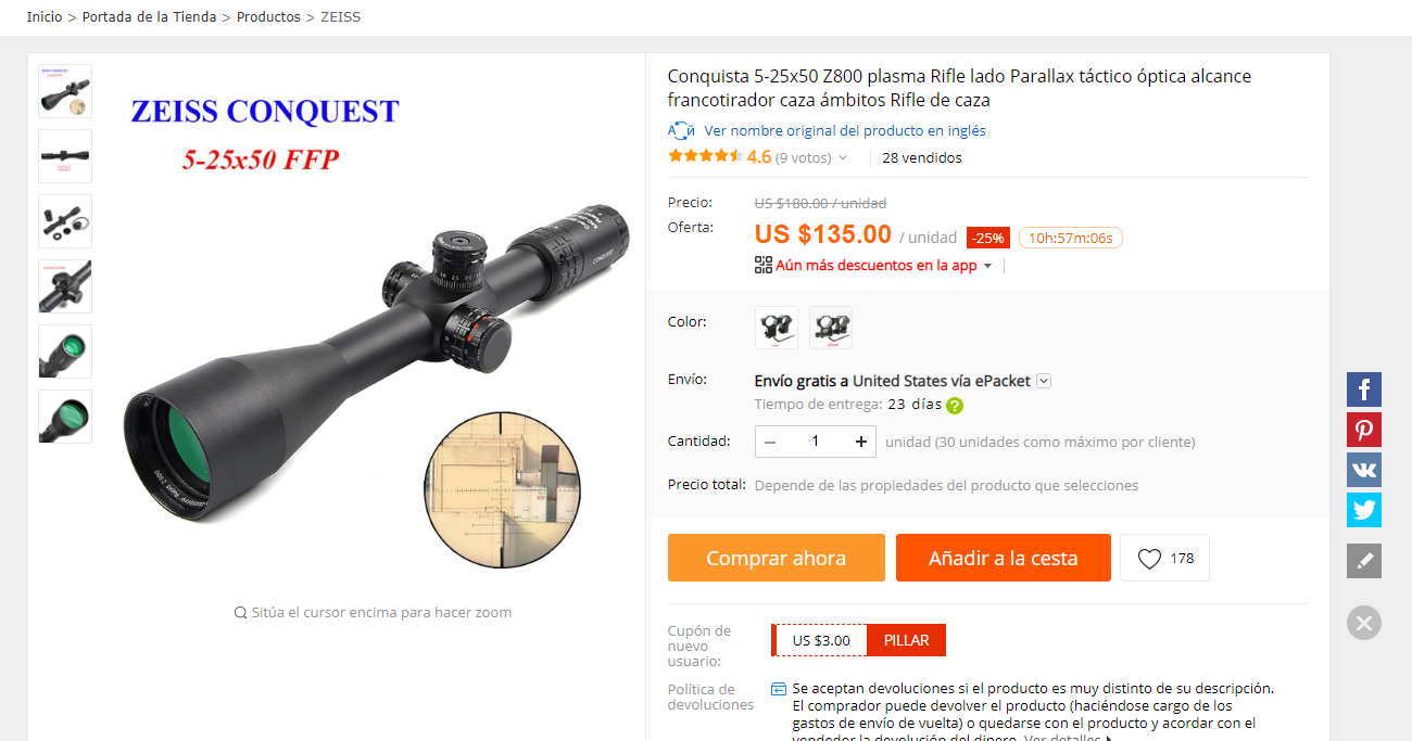 Tendrás una chinería en la que pondrá Leupold como en otras pone Swarosky. Para un 22 lr, puede ser que la mecánica funcione, pero no esperes óptica de calidad.