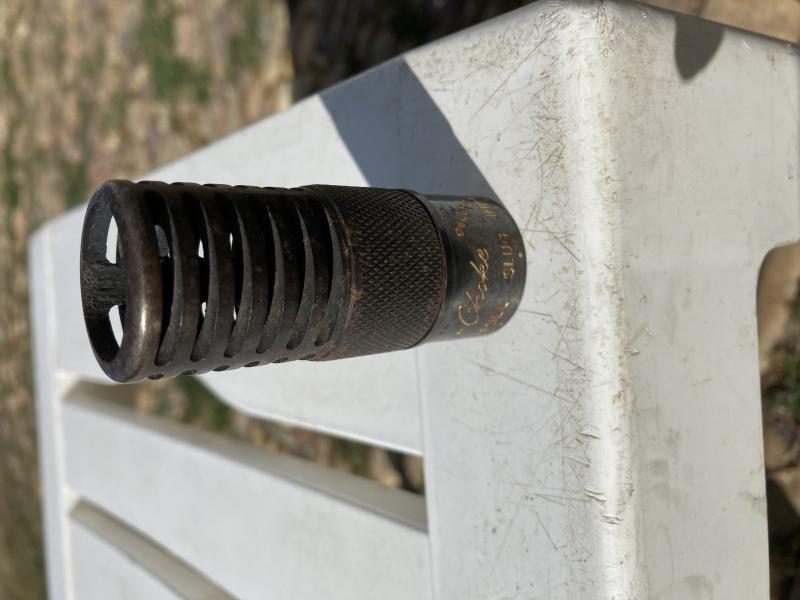 Hola compañeros, he encontrado lo que parece ser un freno de boca para escopeta que era de mi abuelo pero no veo la manera de ponérselo a ninguna de las que él tenía.