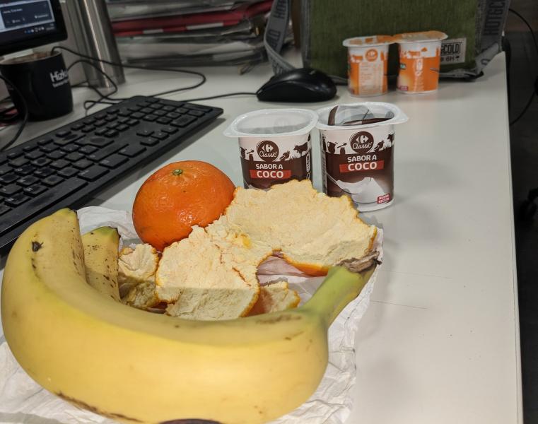 Ahora ya ni eso, plátano, 2 mandarinas y 2 yogures, las que más me gustan de coco o limón.....