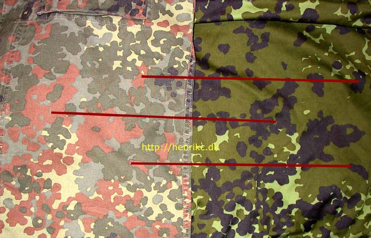 comparacion, entre una porcion de camuflaje aleman y una del usado por los daneces,inspirado en el primero.