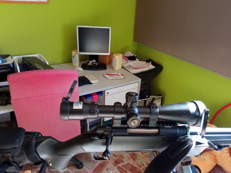 Bueno mi amigo ha venido a mí casa a enseñarme el visor y como queríamos hacer una comparación con mi Bushnell elite, lo hemos sentado en uno de mis rifles, pues a pulso es más difícil, empezaré por las anillas, aunque la barra de abajo la que entra en la ranura del carril es redonda, cosa que no me gusta, la verdad que una vez puestas, se ven firmes y no se mueven, eso sí, son demasiado altas, para este visor deberían de ser un poco más bajas