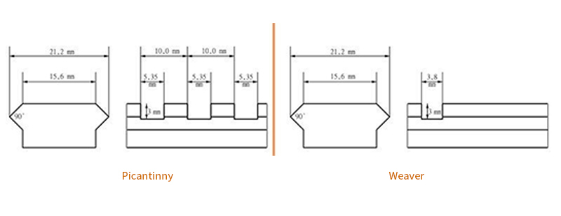 Las medidas de un carril picatinny y weaver no es el mismo.