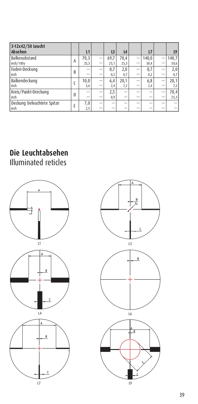 retículo similar al alemán de Scmith und bender. 70,3 centímetros a 100 metros, la apertura entre postes horizontales