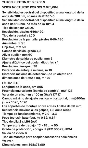 Vendo visor nocturno digital Yukon Photon XT 6.5 X 50 S con menos de 1 año y sin uso está nuevo nuevo, Incluye su funda de transporte, gamuza y cable para conectar un grabador y aportó una linterna estar de iR de mucho más alcance que va acoplada al visor.