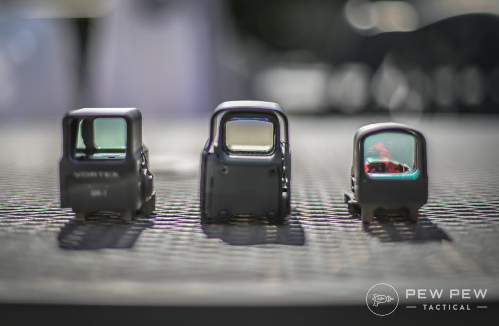 Todos, Bushnell, Eotech, holosun, Vector, ..., caían bajo la denominación de puntos rojos, lo que los diferencia es la tecnología que genera la imagen y cómo se representa, unos holográfica por diodo laser, otros led o fibra óptica, pero sea un punto, una cruz, una retícula, todos son puntos rojos; de hecho la Bushnell HoloSight fue la primera mira holográfica y tenía retículas intercambiables, una de ellas un punto rojo.
