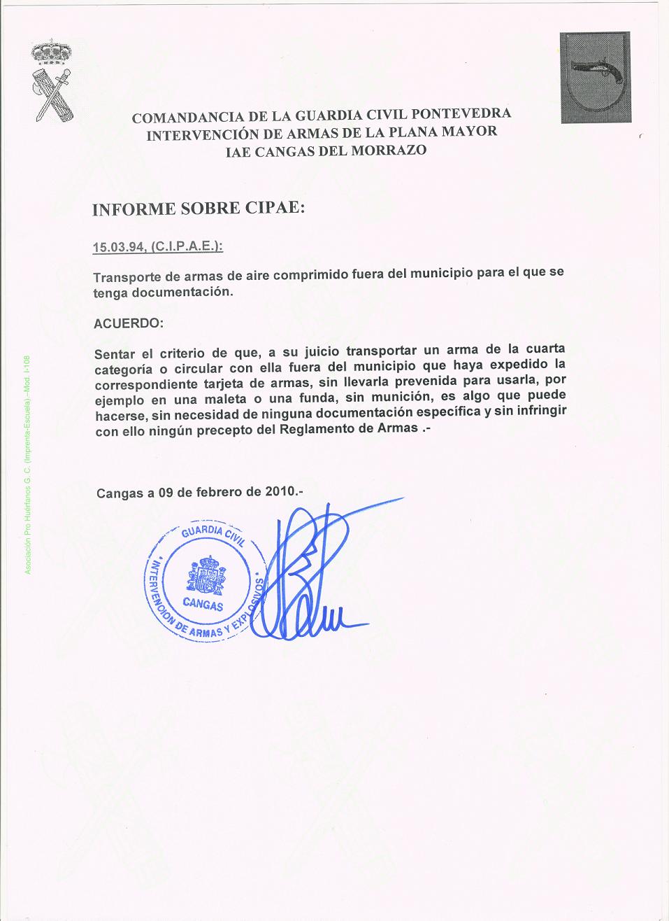 A dia de hoy, el transporte de una carabina de 4ª categoría sin llevarla prevenirla para usarla es algo que se puede hacer sin necesidad de documentación específica.
