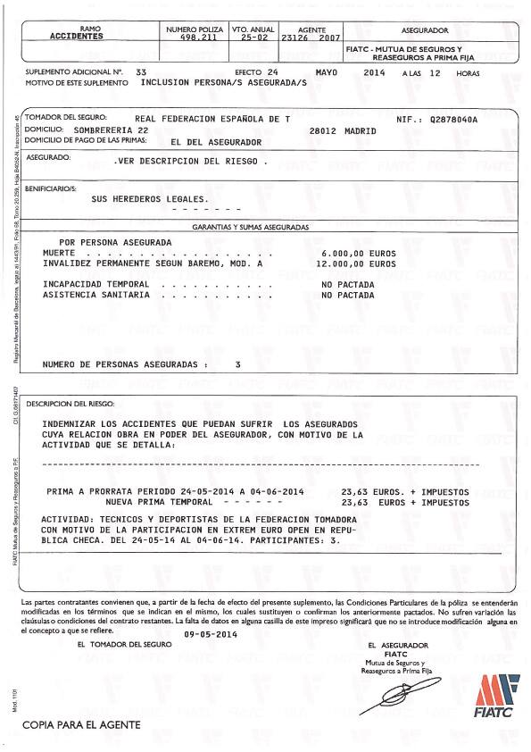 Lo que más me preocupa de este "seguro" que hace llamar la Federación es que no cubre la responsabilidad civil, cosa que sería lo más importante a mi parecer.