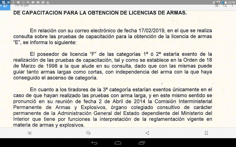Si tienes Licencia F de Tercera Categoría y has superado el examen con Arma Corta no te conceden automáticamente la Licencia E, en cambio si ya eres de Segunda Categoría independientemente del Arma utilizada en el examen sí tienes acceso inmediato a la Licencia E.