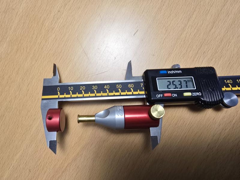 No tienes porqué comprar ese artilugio, puedes utilizar una vaina del 222 (o similar) ya disparada, mides el total de la vaina con el pie de rey y lo pones a cero, luego metes la bala del 22lr con la punta mirando adentro de la del 222 y mides, ya tienes el grosor de la pestaña.