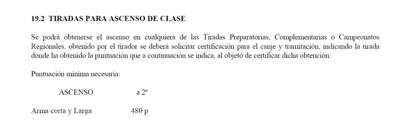 Aqui en Madrid ascenso a segunda si o si 480 puntos en tirada complementaria o preparatoria y te digo mas el ultimo compañero que ha ascendido ha sido el mes pasado y hizo en standar 486 puntos con los cuales la FMTO le facilito el certificado para la obtencion de la segunda categoria.