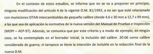 Espera Antares.... ¿Estás afirmando que la prohibición del 30-06 no era mentira? Pues en el mismo documento que adjuntas se afirma que nada de nada.