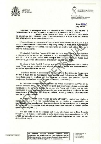 Re: LEGISLACIÓN ARMAS AE, CARTUCHO METÁLICO AE, y ICAE