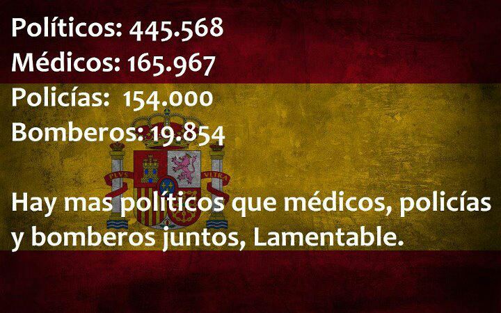 En España tenemos 450.000 políticos mientras que Alemania tienen 150.000 y son 80 millones de habitates, el doble que nosotros. Evidentemente toda esa gente tiene que estar haciendo que hace algo, y evidentemente si tu no tienes problemas, sobran.