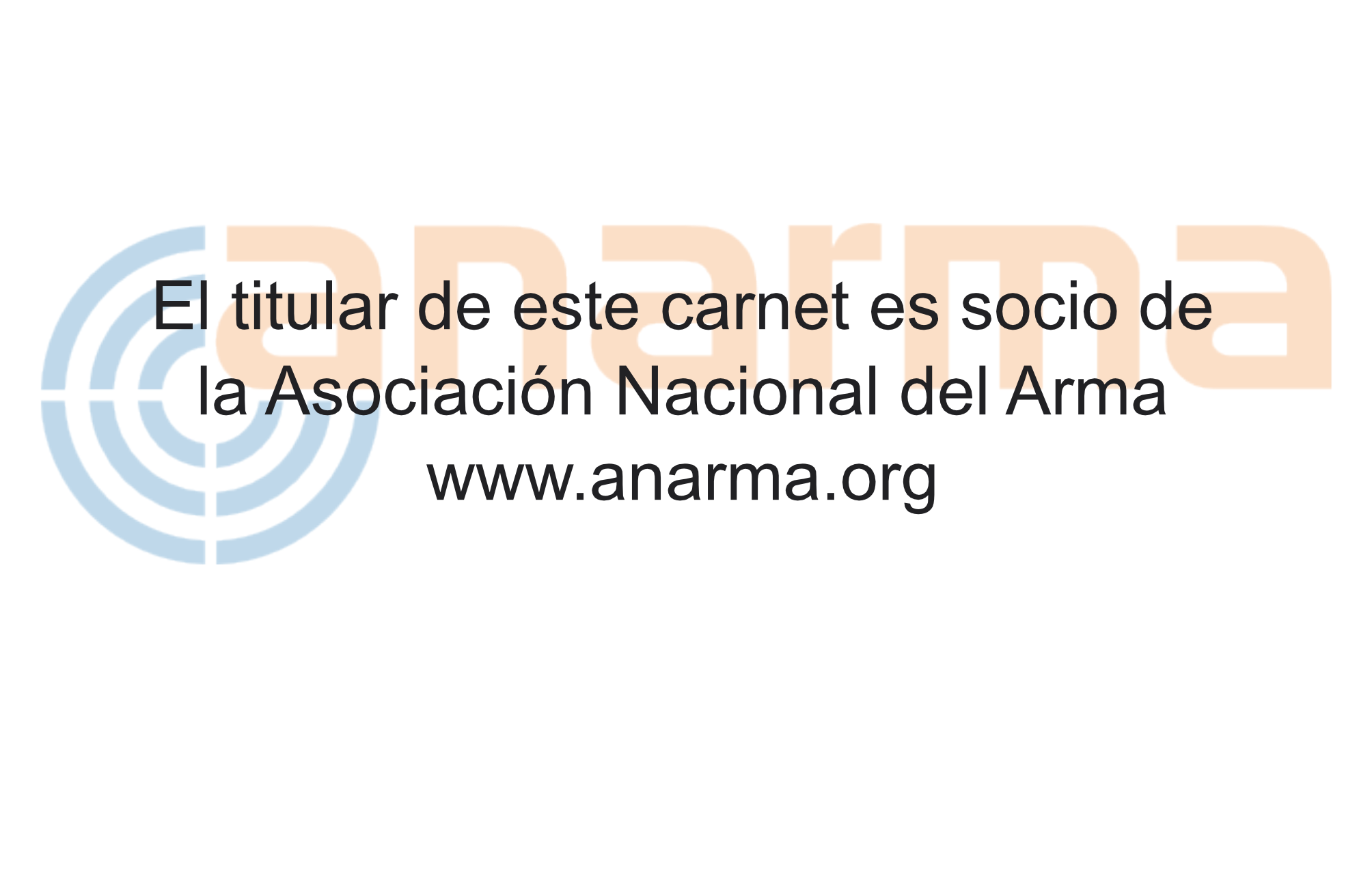 Mejor algo más sencillo al estilo del adjunto con parte del logo viejo de anarma (y si se hace a doble cara este completo en el reverso) Como no tengo el logo actual de ANARMA ni el logo de FESAC solo pongo texto indicando donde irian. Se puede jugar metiendo un color de fondo, cambiando posiciones ...