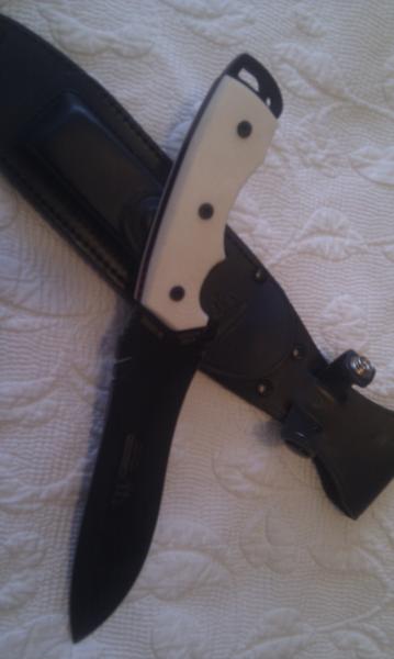 El año pasado me regalaron un cudeman boina verde de esos del Tajo Breton de acero Bohler k720, y como soy un caprichoso, vi la.pareja de BV que un compi vende en el foro y me gustaron mucho las cachas en micarta blanca. La semana pasada escribí un mail a cudeman preguntando sí me podrían vender las cachas y cual fue mi sorpresa que me las mandaron sin siquiera tener que pagar los portes e incluyeron los separadores ej fibra roja y las agujerearon para mayor comodidad. Las fotos, esta tarde