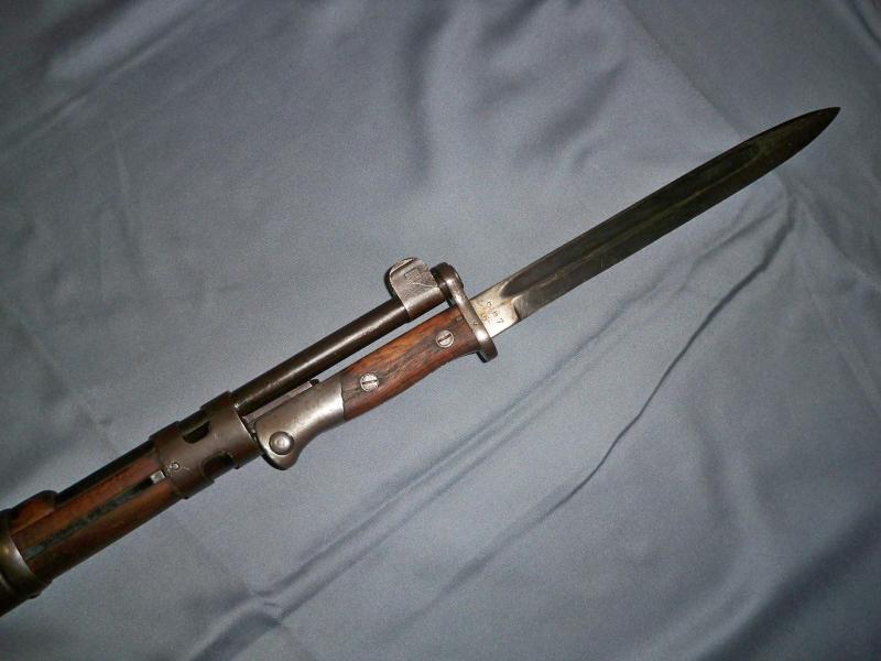 Entre varios compañeros compré 5 bayonetas. Tenían una curiosidad, todas tenían una señal por la parte mas delgada, como si las hubieran doblado o partido, y luego soldado. Algunas están pavonadas, y otras no, no porque hubieran perdido el pavon, sino que nunca se les llegó a aplicar..Carecen de numero de serie, y la madera está impecable.