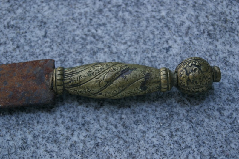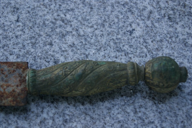 Por el "verdillo" que muestra, la patina visible, y a falta de darle tacto en vivo, yo diría que es bronce... O latón muy aleado con bronce.