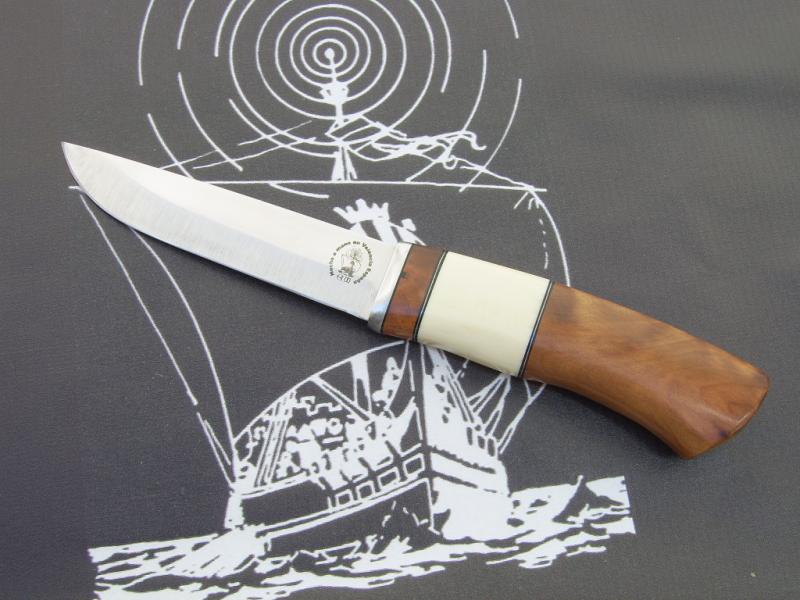Este nordico esta realizado en acero inox, Ma5mv en 2´5 mm y encabado con Raiz de Thuya y separador de Eforyn blanco.