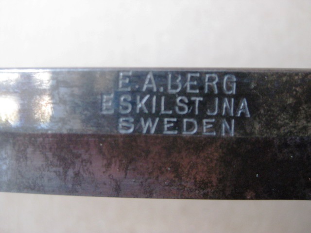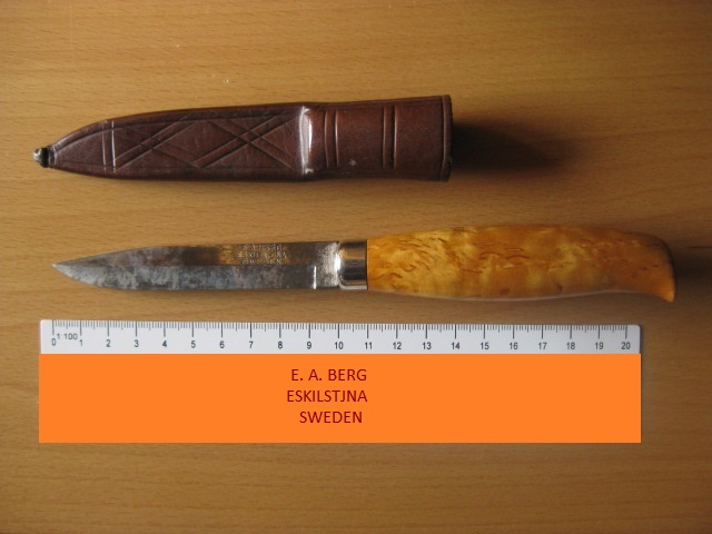 Buscando de nuevo en la red, he encontrado parte de la historia del fabricante de tu cuchillo, pienso igual que el compañero Antonio1955, que no es muy viejo el cuchillo, por el aspecto del cuero y la pátina de la hoja no creo que tenga muchos años.Te paso los datos de E.A. Berg de Eskilstuna, Suecia, está pasado por un traductor del inglés al español, pero se entiende casi todo.