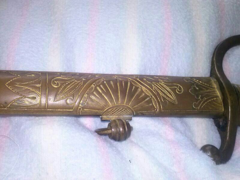 Tal vez juzgemos por briquet por su mango lo que es una espada a juzgar por su hoja recta. Un tal vicente Toledo tiene un libro en el cual se ve una hoja en primer tercio pavonada y con grabados florales similares dorados. Dice que son de factura francesa y relativamente comunes. Esas si portan vaina metalica, que no elaborada, dos enganches. Asi que puede que la empuñadura de briquet sea un reciclaje posterior. Por eso no encaja bien. No un modelo original de fabrica sino transformado. Gracias homer es aclarador tu comentario. Existe algun valor coleccionable en la pieza?