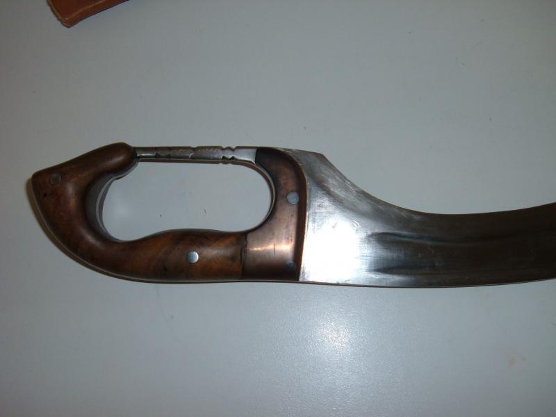 Por cierto,he visto en TC,un cuchillo de la Fabrica de Toledo,que anuncian como prototipo;en un estado de fuerte corrosion,de un tamaño pequeño.Reune una serie de directrices,con respecto al tuyo y al mio,en cuanto a la ergonomia de la empuñadura;el pomo y la guarnicion son semejantes;y en el supuesto de que no llegaran a ser reglamentarios en España,no quita para que lo fueran en otros paises,o formaran parte de pedidos importantes de la empresa civil;si alguna vez aparece documentacion fiable,saldremos de dudas...