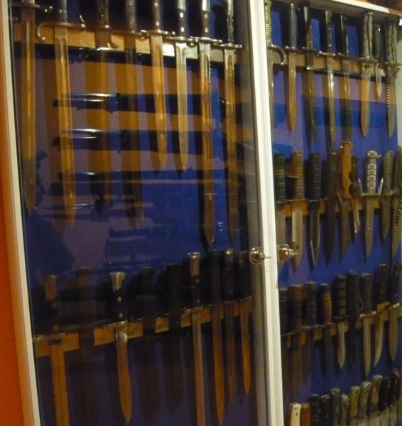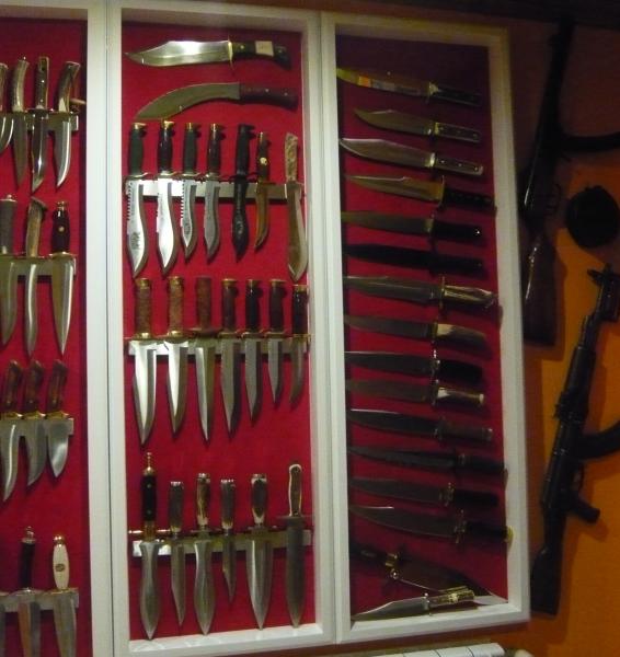 yo tengo varios expositores para mis cuchillos y algunas bayonetas que tengo,y los tengo colgados de la pared.