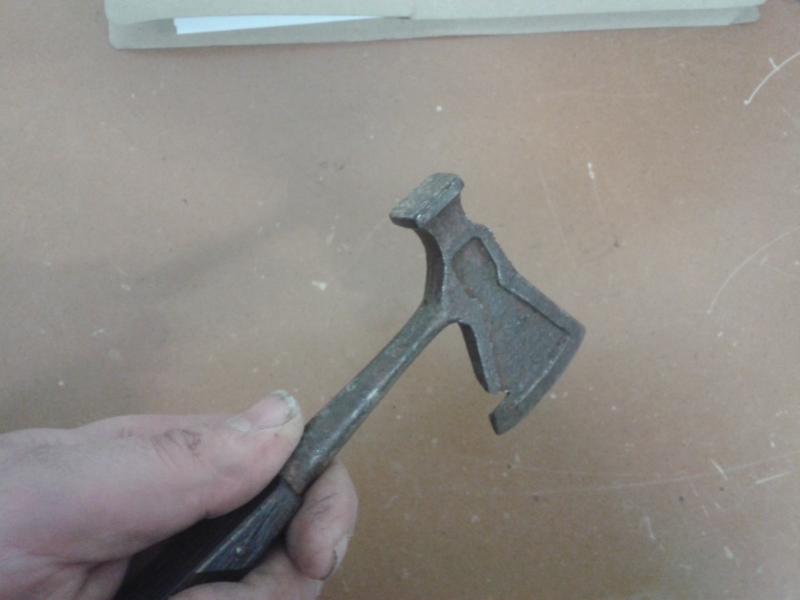 Me recuerda a una hacha, con pico, de acero fundido (no confundir con hierro fundido) que me regalaron cuando mi antigua empresa de almacenes frigoríficos cerró, gracias a las fatídicas olimpiadas de 1992 (os lo dice uno nacido en BCN).