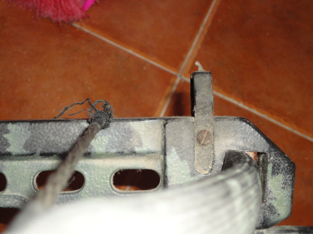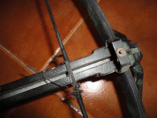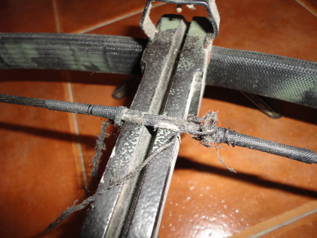 Hola, un amigo me ha traido una ballesta para que podais ayudarle,no se que marca o modelo es pero cada vez que le pone una cuerda nueva la acaba rompiendo tan solo con disparar 8 o 10 veces y esto no me parece nada normal. Os dejo fotos del estado actual de la cuerda con solo dos o tres disparos.
